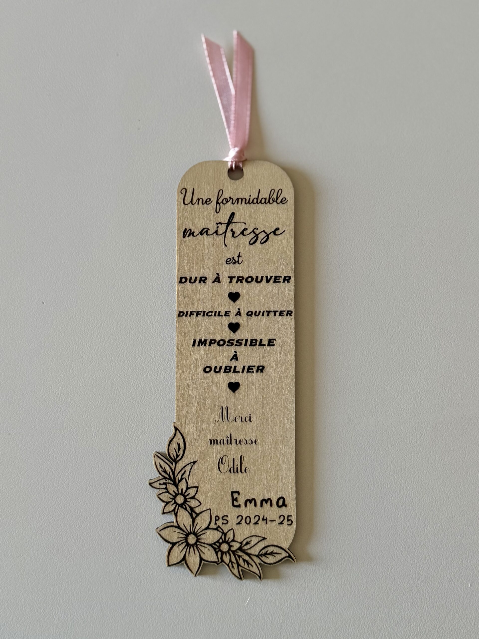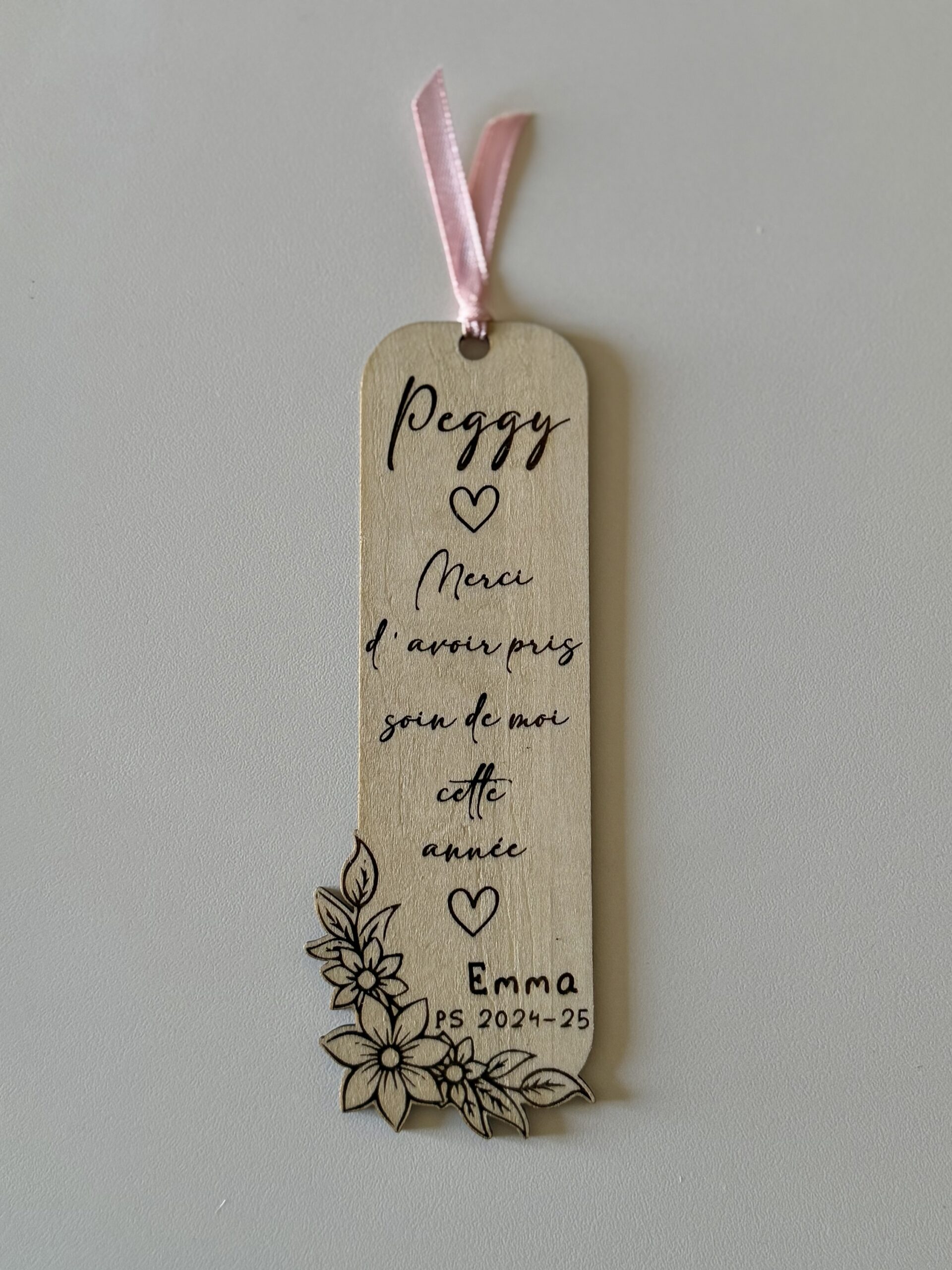Offrez un souvenir précieux à l’enseignant(e), l’ATSEM, la nounou de votre enfant avec notre marque-page en bois !